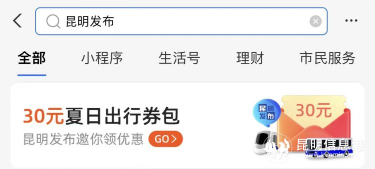 昆明市委网信办指导下,昆明“绿色出行”公益活动将持续1个月。市民乘坐支付宝公交主题车与地铁,通过在支付宝搜索“昆明发布”可直接领取30元出行券包,包含以下权益:10元公交地铁券一张;10元高德打车优惠券一张;8元火车票优惠券包;2元哈啰单车优惠券一张。奖品数量有限,先到先得。每个用户限领一次。