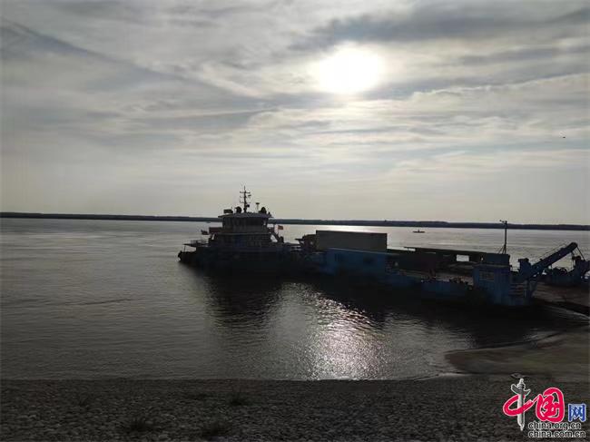 位于荆州二期河道整治工程第13标段的湖北荆州石首三义寺汽渡。中国网记者 彭瑶 摄