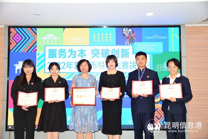 经过激烈比拼,谢瑞、王崇屹、何雪玲等12名选手分获一、二、三等奖,云南世博旅游控股集团有限公司荣获最佳组织奖,云南陆军讲武堂历史博物馆荣获突出贡献奖,云南旅游职业学院、云南民族村有限责任公司荣获优秀团体。大赛结束后,组委会将从获奖选手中择优推荐人选,代表昆明市参加8月举行的云南省导游大赛。