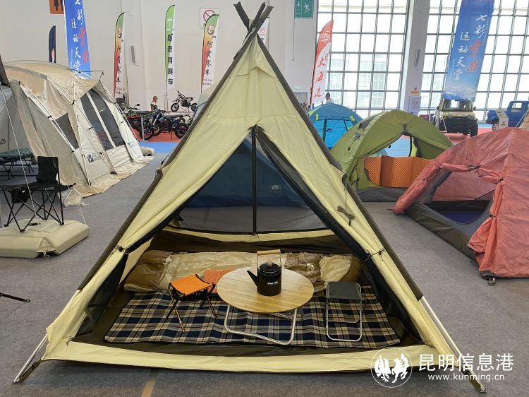 云岭户外展区内,各种类型的帐篷支满场地,其中,巨大的隧道帐篷吸睛十足。参展人员告诉记者,近两年,举家露营的人越来越多,普通的帐篷已经不能满足人们的需求,金字塔帐篷、隧道帐篷虽然价格卖到数千元,但却也是卖的最火的。像展区内的隧道帐篷,中间是客厅,满足一家人的休闲空间,两边各自是卧室,能容纳一家四口休息,且互不打扰。而每种帐篷也有一定的防水功能,使得露营人群有更好的露营体验。