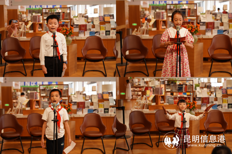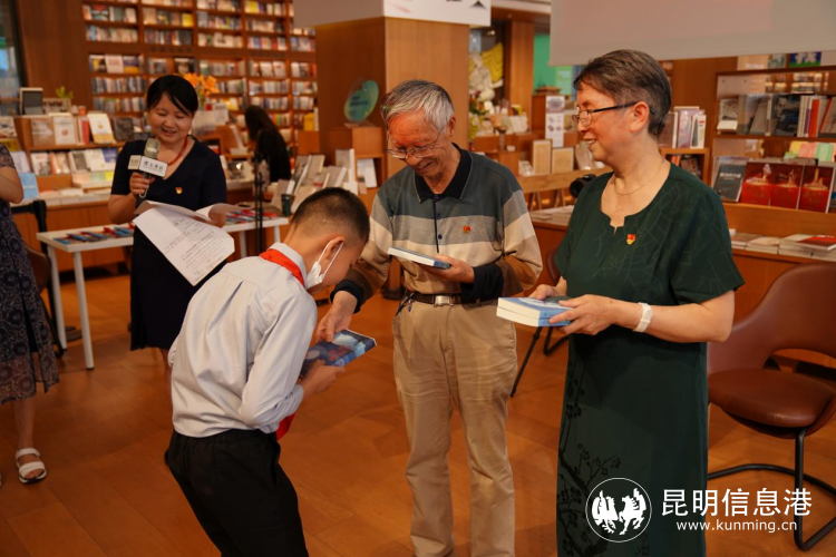 6686体育讯 记者王奕然 实习记者谢星宸 7月16日,以“歌颂伟大祖国、歌颂中国共产党”为主题的儿童诗歌朗诵会在昆明璞玉书店举行,同时也拉开了“喜迎盛会向未来——2022昆明文艺周”暨昆明市文联新时代文明实践文艺志愿服务活动的序幕。本次朗诵活动到场的文艺家,有被称为“课本爷爷”的全国著名儿童文学作家吴然,全国著名儿童文学作家、2021年全国优秀儿童文学奖获得者陈约红,第十五届IUP国际摄影展览彩色组肖像主题铜奖获得者、昆明学院教授朗晏清,出席活动的还有昆明儿童文学研究会会长唐凤莲、副秘书长楼琳、理事王霏、会员莲凤鸣。
