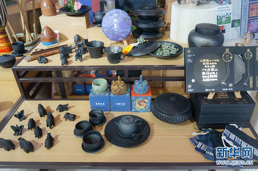 普洱展厅里摆放着的文创产品(摄于7月22日)。新华网 范芳钰 摄