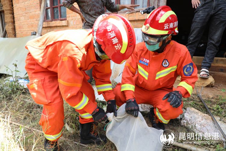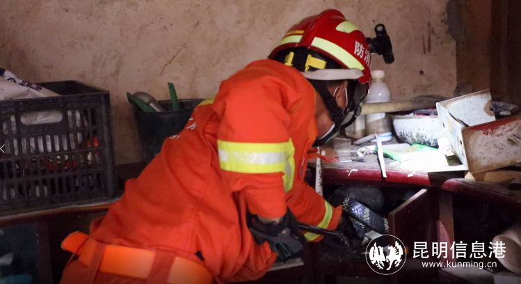 “我去拿家什(云南方言),开了那道门,看到桶后面有响动,我刨刨后是一条蛇,当时爬出来又吓到我,就打119的电话来拿。”报警人胡先生紧张的表示。