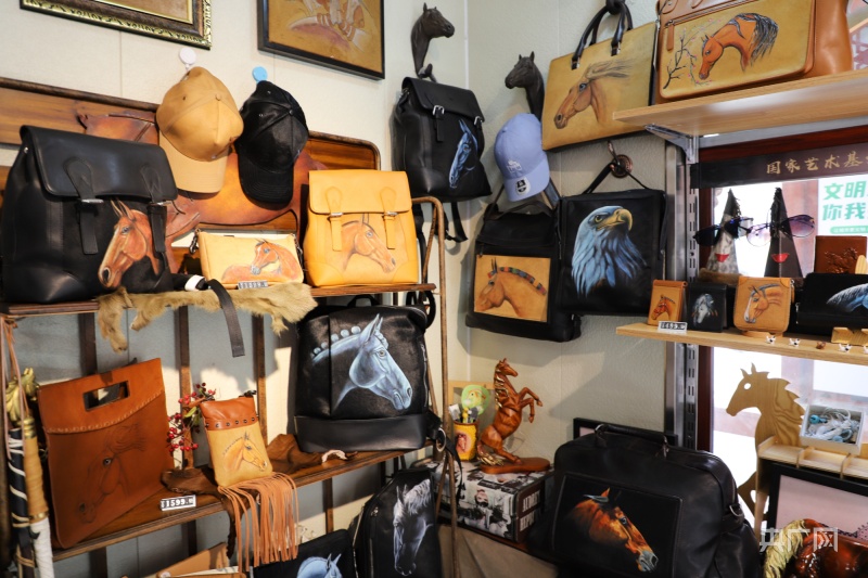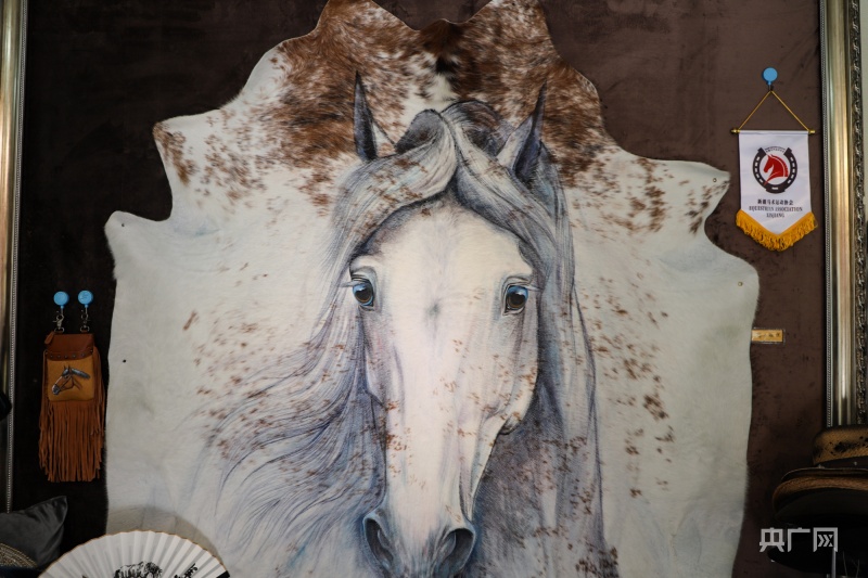 她说:“毛皮上作画其实我们也画过很多题材,从材料上看更符合画动物的题材,在动物的题材当中,我们选择了马,形象好,寓意好,马文化又是草原文化的一种体现,很多外地客人到了新疆以后,觉得马就代表着新疆文化的其中之一,马的寓意也体现了新疆人民这种美好的向往。”
