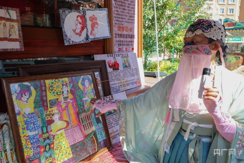 非物质文化剪纸传承人王革将剪纸艺术融入新疆元素(央广网记者 罗成 摄)