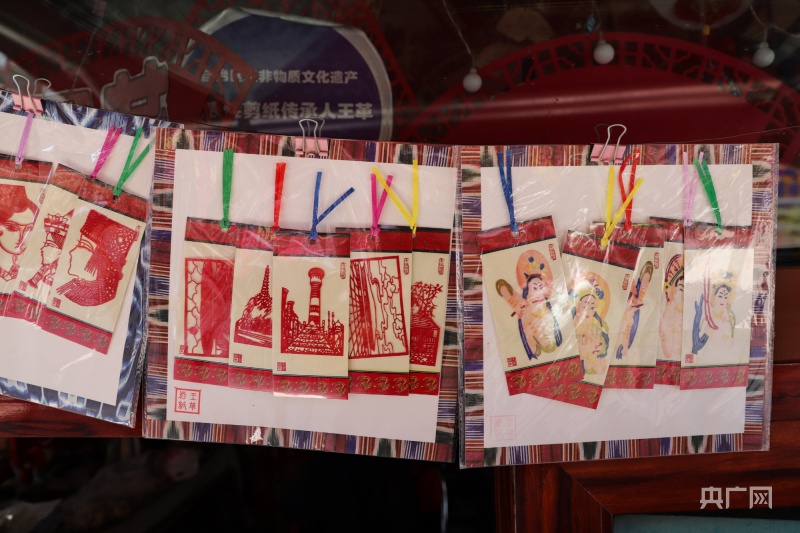 近年来,王革将剪纸作品融入日常生活,开发出剪纸扇子、书签、灯笼、明信片、装饰画、冰箱贴等几十种非遗文创产品,这些产品都成了畅销的新疆礼物。