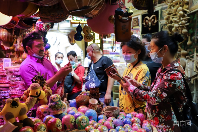 新疆乌鲁木齐市天山区文化体育和旅游局干部郑雨轩介绍,目前,新疆国际大巴扎景区日接待游客近6万人次,游客们在这里品美食、赏歌舞,感受民俗风情。