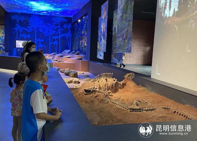 昆明市博物馆为让公众、特别是正处暑期的孩子们能够更好地认知这座城市的生态发展历程,直观感受这个城市的生态文明建设成就,助力孩子暑期生活,举办学生古生物探秘活动——“暑期古生物探秘”。展览地质剖面图、恐龙骨架模型以及场景复原等部分并未设置警戒线,并在展览入口设置多媒体屏幕播放科普片,让孩子从视、听、触觉全方面感受展览。昆明市博物馆馆长陈浩表示:“博物馆是提供公共文化服务的重要机构,传承人类文明的重要殿堂,是科普知识、提升审美、浸润人心的精神家园,对于青少年来说,我们更加希望这里成为你们接受爱国主义教育的地方,用一份“文化大餐”感染和影响你们热爱自己的家乡。”