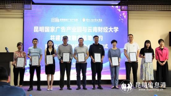 会上,昆明国家广告产业园运营公司与云南财经大学传媒与设计艺术学院共同签订产教融合基地合作框架协议,云南财经大学传媒与设计艺术学院产学研创实训基地挂牌,昆明国家广告产业园文化出口基地研究中心成立并揭牌。