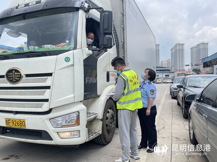 据官渡区市场监管局相关负责人介绍,今年上半年,官渡区对昆明市进口水果监管仓共查验车辆2703辆,核酸采样检测88383份,预防性消杀约3576982件,货量约40632吨,开具出仓证明2662份,为这些来自越南、泰国、澳大利亚、新西兰、智利等国的货物把好“安全关”。