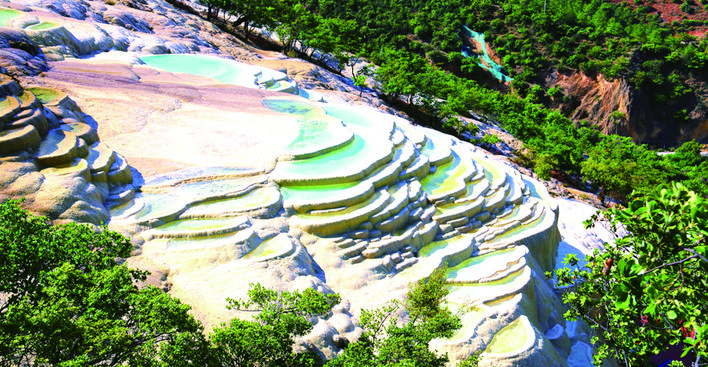 白水台位于香格里拉市城区东南部的三坝乡白地村,是纳西族东巴教的发祥地。这里被称为中国版棉花堡的秘境,还没有被太多游客造访过。远远看去,青山掩映中的白水台就像层层梯田,在阳光照耀下,又仿若摄影作品中凝固的瀑布一般。在这里你可以感受纳西族东巴文化的魅力,与活着的象形文字来一次亲密接触。 (来源:香格里拉旅行微信公众号)