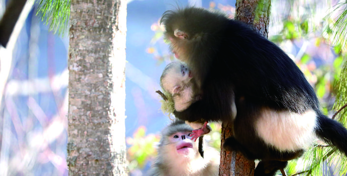 滇金丝猴国家公园位于“热巴艺术之乡”——维西县塔城镇。滇金丝猴是我国特有的灵长类动物,其分布区域狭窄,仅限于金沙江、澜沧江之间的云岭山脉海拔2800米—4300米的雪线附近,它们有着标志性的大红唇,堪称世间最美的动物之一。小猴活泼可爱,老猴若有所思,它们都在不经意间诉说着脚下这片土地升腾的蓬勃强劲的生命力。