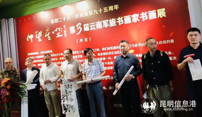 上午9:30,云南地下党建党旧址《启航》巡展在77331部队准时开展,博物馆讲解员姚群、王亚南,努力将中共云南地下党建党旧址的光荣革命历史讲生动、讲清楚,收获了官兵们热烈的掌声。上午10:00,“喜迎二十大•庆祝建军九十五周年第三届‘仰望星空’云南军旅书画家书画展”在云南陆军讲武堂旧址开展,展览分为书法、篆刻、国画三部分,共70件作品。