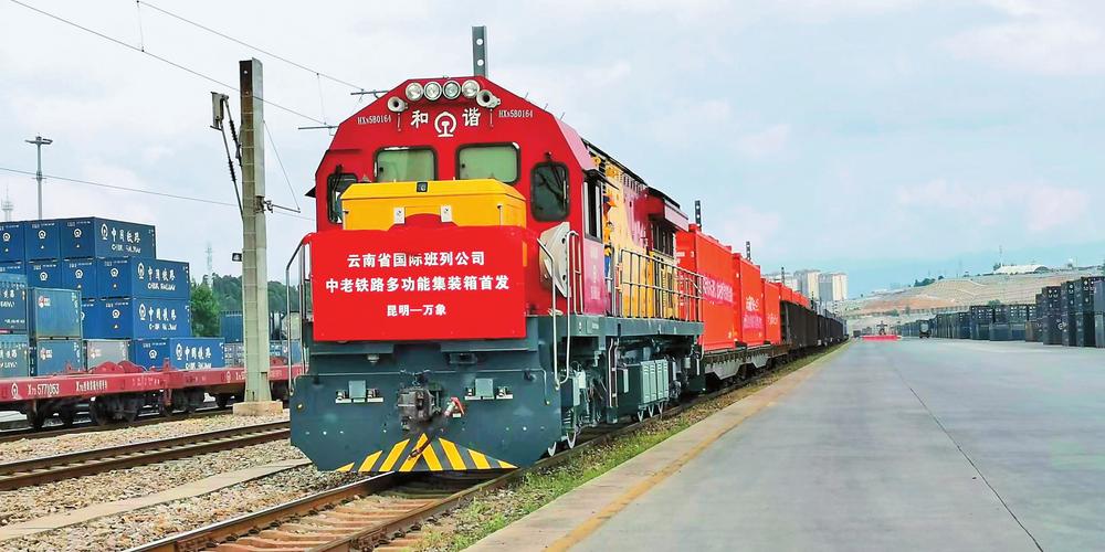 8月1日,一列中老铁路国际货运班列在昆明王家营西中铁联集昆明中心站启程开往老挝万象。该专列运载的6个名为“橙长柜”的多功能集装箱属首次投入中老铁路运营。