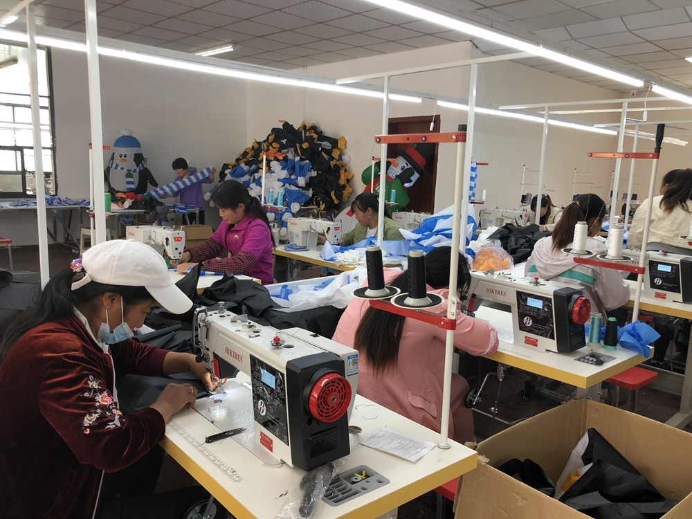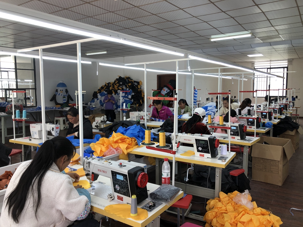 吴大波说:“政府为我们提供了免费的场地,招聘工人后给予免费培训,目前我们有工人四十余人,加上管理人员有五十余人。”