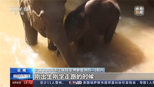 云南省普洱市江城县亚洲象监测员刁发兴:有的时候你看它(小象)刚出生刚学走路的时候,特别有的时候过沟或者上陡坡的时候,大象妈妈会用鼻子慢慢地屁股上赶着走、抬着走,所以说感觉到挺可爱的。