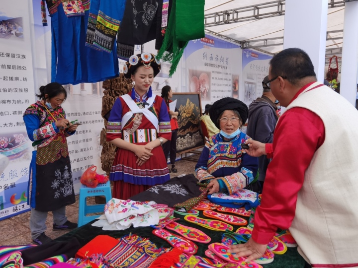 2022年5月开展的“天雨流芳·文旅大集”活动中传统刺绣产品展台。(赵坤玉/摄)