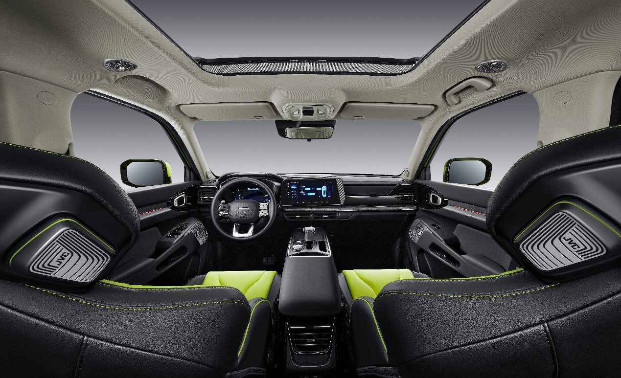 年轻人,心中装着远方,自带BGM出场。哈弗酷狗配备“4D燃音座舱”,搭载联合JVC品牌打造的18扬声器,通过1中置/4高音/4低音/2中音/2顶棚3D/2头枕/2环绕/1重低音,形成全方位立体式环绕声场。远赴欧洲定制化调音,加持千瓦级数字化功放,16个通道,让声场更澎湃震撼!超三分频配置,高中低音各司其职,让声场更加立体清晰;顶级NVH技术,让声场更纯粹!
