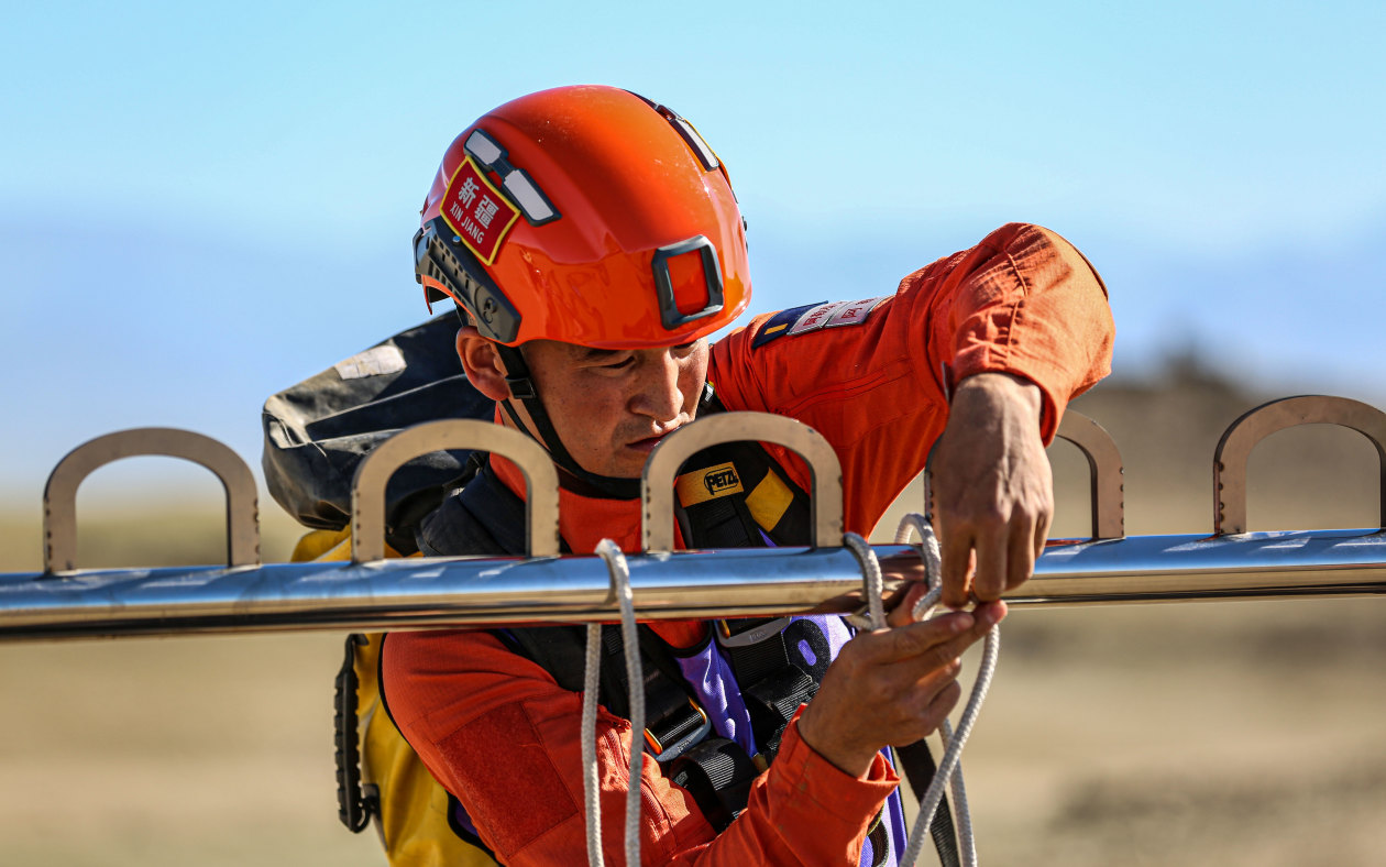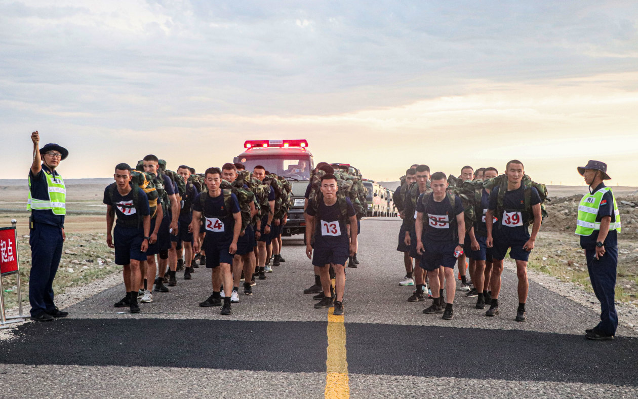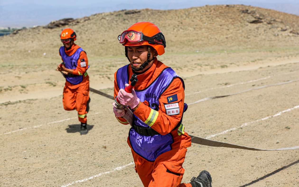 绳索应用技能、夜间山地水泵架设、操艇绕标、负重8公里越野……近日,新疆阿勒泰森林消防支队“守卫金山·2022”野外驻训暨“火焰蓝”两项比武活动在北疆戈壁上如火如荼展开。“新疆的夏天温度高,能够更好地模拟火场的环境和状态。”在中队长王晶看来,酷暑练就精兵,“夏练三伏”别有用意。此次比武紧贴森林草原灭火、综合救援和保障能力需求,坚持“多能合一、连续对抗”的原则,区分灭火专业、救援专业和综合体能三大模块,来自支队所属四个中队128名消防救援人员围绕14个科目26项内容比技能、拼体能、斗毅力。(阿勒泰森林消防支队供图 通讯员张浩)