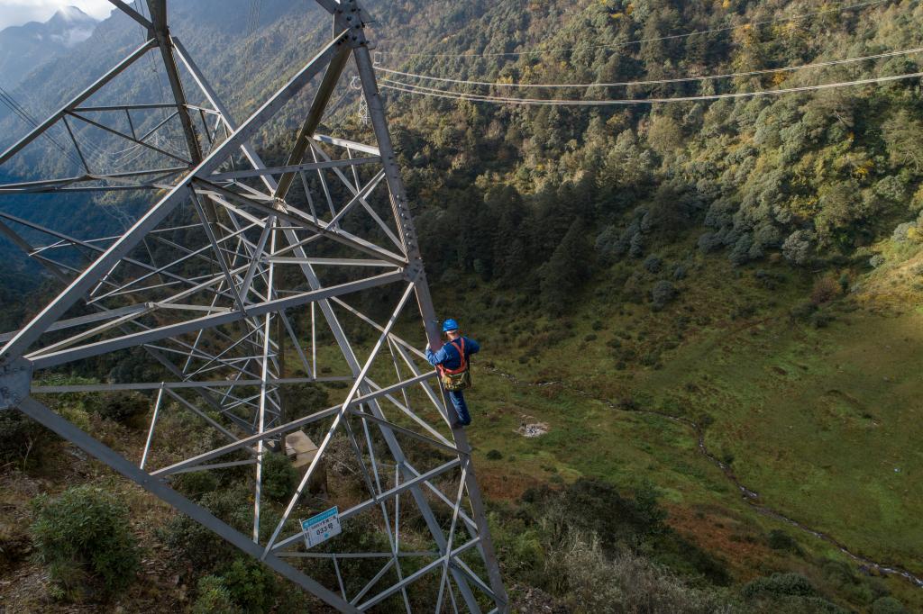 巡线工爬上铁塔检修线路。新华社发廖望/摄