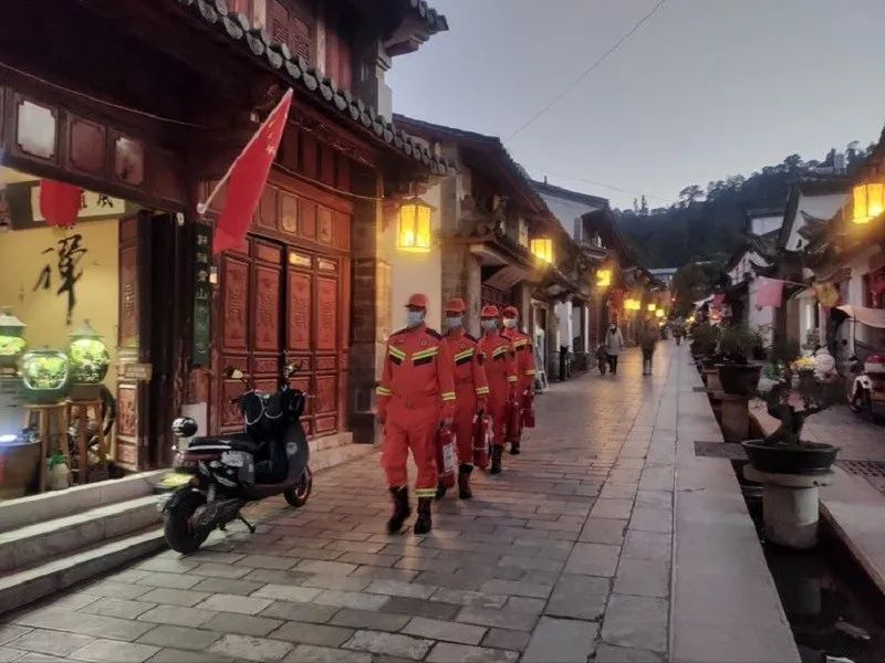 万家灯火时,路灯下的玉溪秀山古城专职消防队