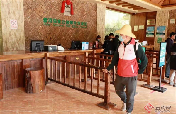 近期,普洱国家公园每日接待2000人左右,景区游客接待上限为每天1.5万人,接待量达到80%时景区采取及时预警举措。“售票大厅、入园口、电瓶车乘坐点等均有疫情防控的提示牌。除了做好游客健康码、行程卡检查和体温测量工作以外,享受政策性免票的游客在入园登记表上填写入园日期、姓名、电话等个人信息后才可入园。”普洱国家公园市场营销部工作人员刘倩介绍,景区所有工作人员一周进行两次核酸检测,游客常聚集的地方安排专人值守,有序疏导。