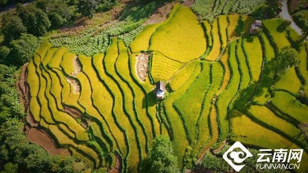 金秋时节,稻谷飘香,云南省红河州元阳县一些低海拔地区稻谷陆续成熟,金黄色的稻谷在错落有致的哈尼梯田里层层翻滚,田野上飘来阵阵稻香,饱满的谷粒在阳光照耀下,散发着金灿灿的光芒,一派丰收的景象。