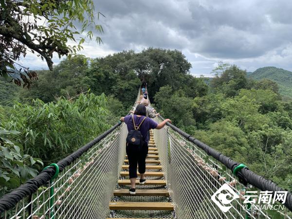 长廊依山而建,集纳了约50种石斛,拾级而上,朦胧水雾中,石斛清香沁人心脾,跳床、吊桥、露天影院、露天KTV、石斛特色餐吧、观景台……每隔一段路程就设有一个休闲游乐区域,游客来到这里,宛如遁入“仙草秘境”,除了赏美景、品美食,还可以体验旅游寻奇、访古探幽的趣味。