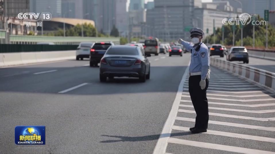 上午10时,上海气温已经达到36度,早高峰的延安高架车流量很大,这条路是上海东西向交通主动脉,烈日下、滚滚车流中,交警浦佳慧已经值守了3个多小时。
