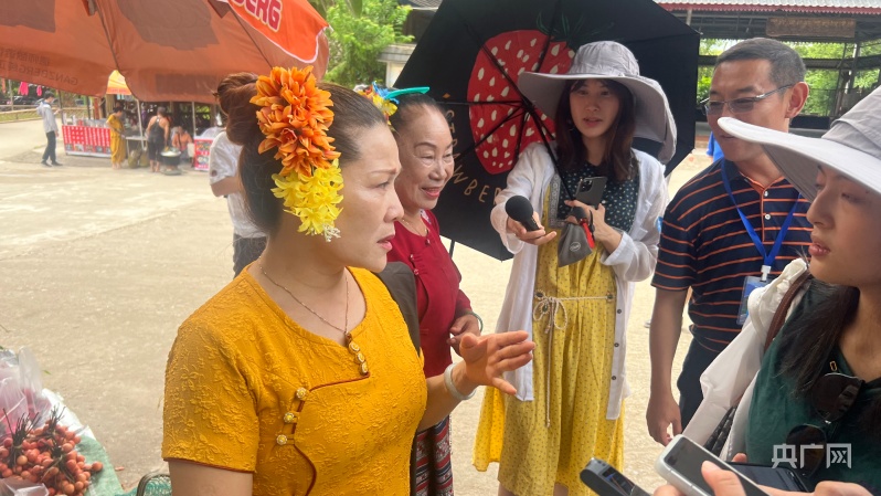 村里的傣族老阿妈与记者热情交谈(央广网记者王晶 摄)