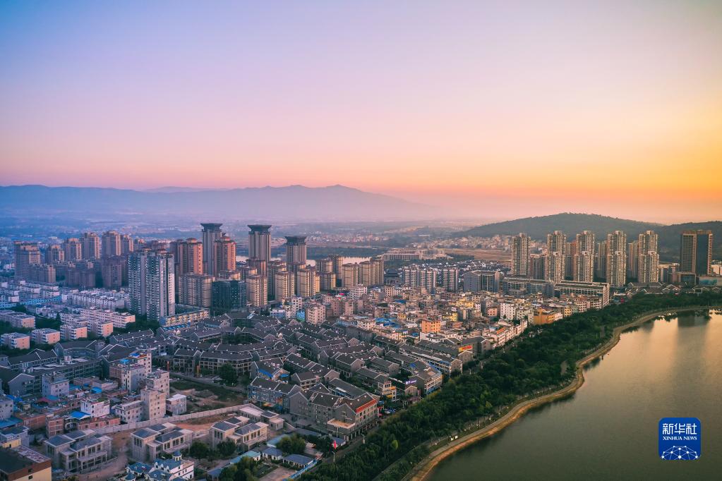 这是云南省弥勒市市区一景(无人机照片,2018年11月29日摄)。 新华社发(李昱廷摄)