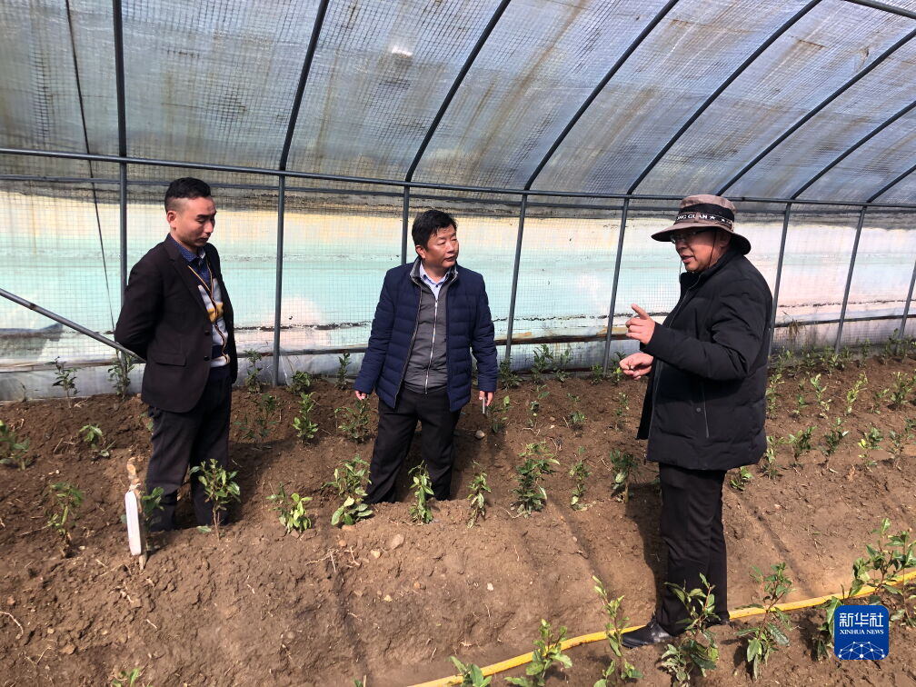 裴含龙(右二)在错那县勒布沟贡日乡指导大棚茶叶栽培。(受访者供图)