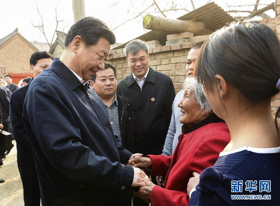 (2014年3月17日,习近平在东坝头乡张庄村看望85岁老人张景枝。新华社记者李学仁摄)