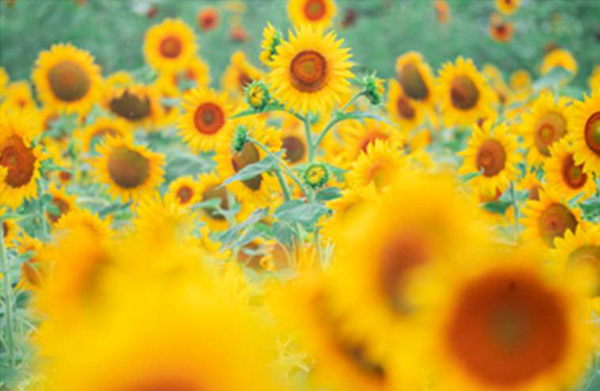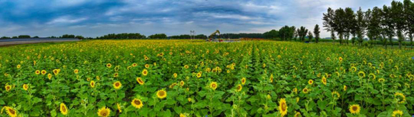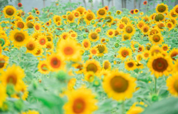 度假村内的向日葵,株株争相吐蕊,簇簇花盘竞相绽放。晴天时,天光云影,绿叶黄花,色彩宛如油画般浓烈。