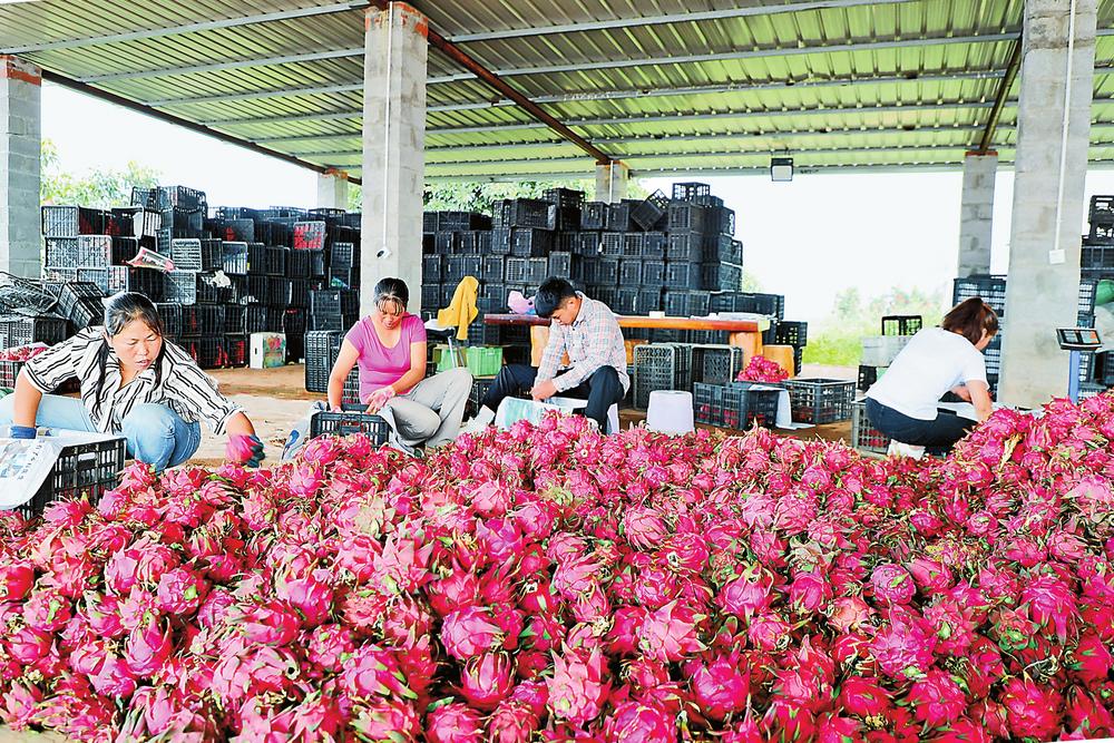 “线上直接销往北京、上海、广州等城市,线下还有越来越多的游客开车到基地自行采摘。”火龙果基地负责人范白云说。