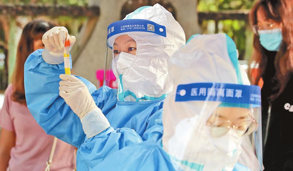 连日来,在昆明市西山区实施静态管理的社区,广大医务人员舍小家为大家,顽强奋战在新冠肺炎疫情防控一线。图为在棕树营街道白马西区,医务人员“24小时不打烊”为社区居民开展核酸检测。(云南日报 记者杨峥)