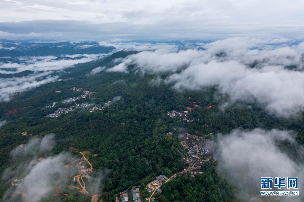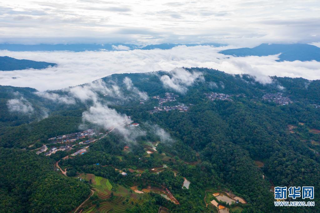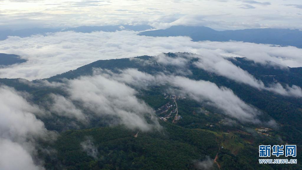 景迈山位于云南省澜沧拉祜族自治县境内,历经千余年传承发展,形成了独特的林茶共生系统和村落景观。雨后的景迈山山峭插云海,村寨入烟霄,村寨、茶林在云雾中时隐时现。(新华网 李浩摄影报道)