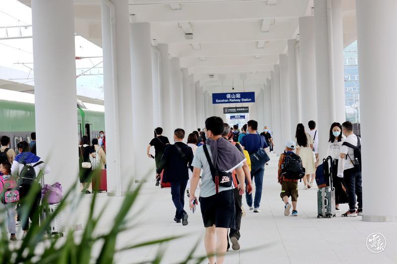 为更好地满足当地百姓出行需求,铁路部门统筹疫情防控和客运组织,有效提升运能运力,最大限度满足旅客出行需求。8月5日起,保山至大理动车组列车重联运行,单趟列车旅客发送定员由630人增长至1260人,全线开行旅客列车7对,其中昆明至保山旅客列车3对、大理至保山旅客列车4对,昆明至保山最快3小时26分可达,大理至保山最快1小时9分可达。