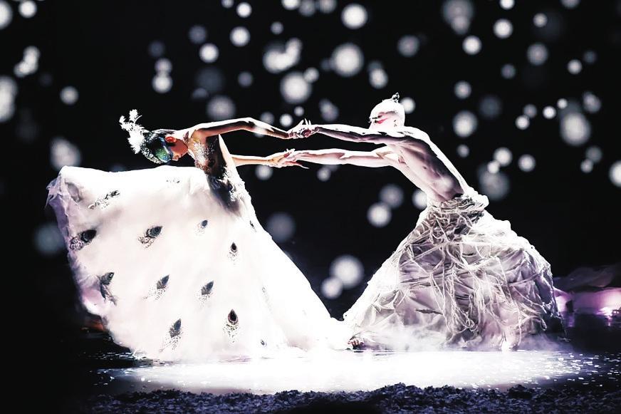 2022版舞剧《孔雀》,从演员表现力、形式编排到舞美设计,都让人耳目一新。杨丽萍将自己定位为“召集者”,让更多年轻人在舞台上发掘自己的能量,将作品中的民族精神充分表现出来。“我从演员身上看到了非常棒的精气神,无论是孔雀还是乌鸦的扮演者,都将角色演绎得惟妙惟肖。”她说,舞蹈是表现民族精神、启迪心灵的一种方式,希望通过舞台呈现出云南人民、云南神鸟的文化内涵。