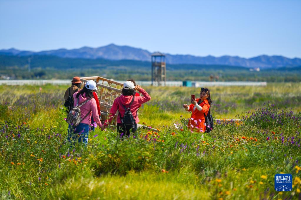9月6日,游客在敕勒川草原游玩。新华社记者 彭源 摄