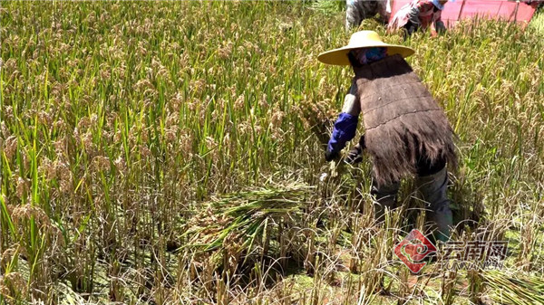 割谷、打谷、抓鱼,田里不时传来阵阵笑声。在当地,村民们利用稻和鱼共生的关系,不向稻田里施化肥,这样不但产出了优质有机红稻米,连养出来的鱼也是肉质细嫩、味道鲜美。“稻+鱼”生态养殖,使哈尼山乡一田多收,带来了可观的经济效益,村民种植和养殖的积极性也随之高涨。
