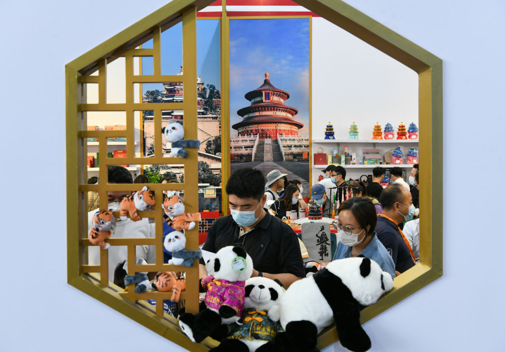 观众在2022年中国国际服务贸易交易会首钢园区的文旅服务专题展区游览购物(2022年9月4日摄)。新华社记者 韩旭 摄