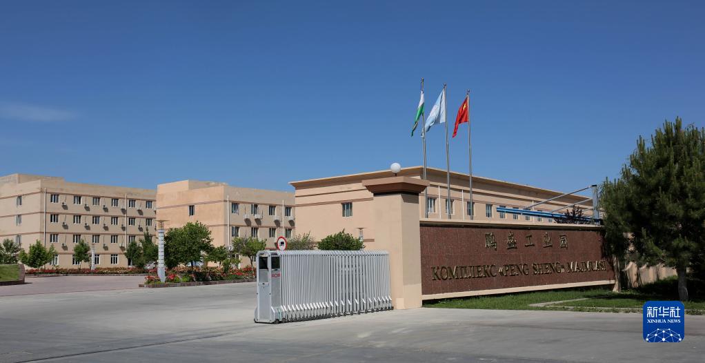 这是2018年5月8日拍摄的乌兹别克斯坦鹏盛工业园入口。鹏盛工业园是中国民营企业直接在乌投资建立的首个中乌合资工业园区。新华社记者 周良 摄