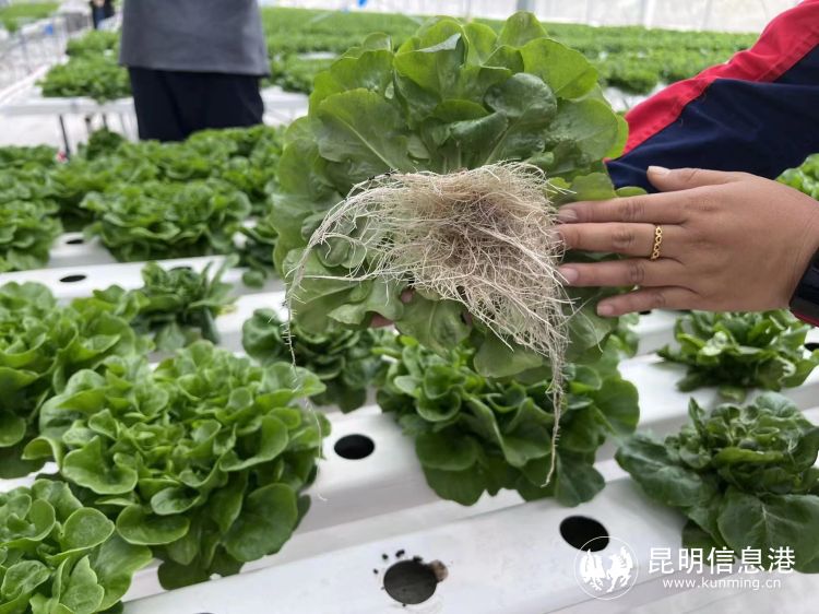 “红橡生菜、绿橡生菜……”在云天化现代农业(昆阳)蔬菜示范园的温室大棚里,生菜有6个品种,这些生菜成熟之后,将被运输到粤港澳大湾区等重点市场,成为人们餐桌上最爱吃的沙拉菜。