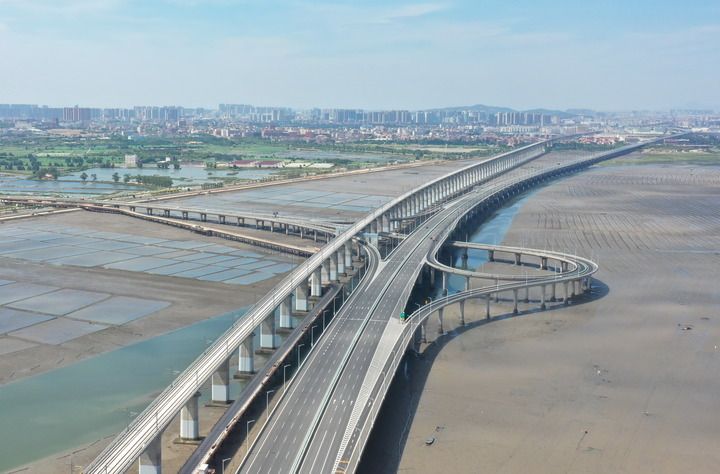 这是9月2日拍摄的新建福厦铁路泉州湾跨海大桥(无人机照片)。新华社记者 林善传 摄