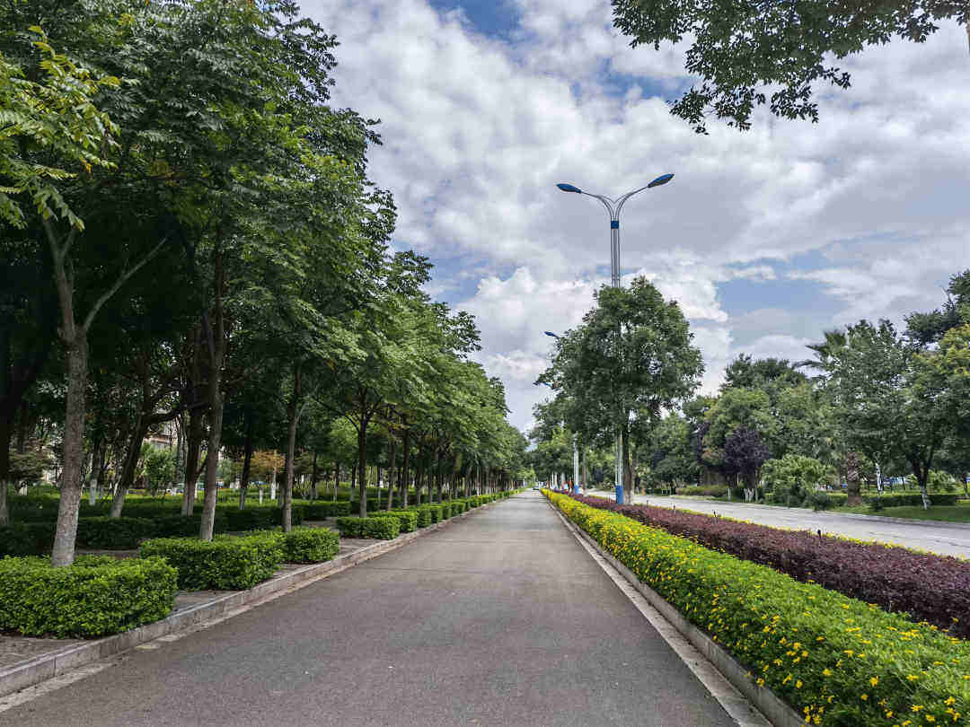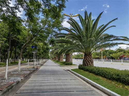 永乐大街,当加拿利海枣叶散开,异域风情地叶片连成伞网,凉爽的树荫顺着笔直的路为车辆和行人送去满身的清凉,马路上的景就进入了人们的眼帘……