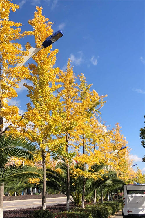 十一月,秋风肃起,大雁南飞,巨桥路上的银杏便开启了一年中最华丽的篇章。疾驰的汽车穿过笔直整洁的街,发动机的轰鸣打破了这片街的宁静,惊到了这片片小小的“金黄”,婴儿巴掌般娇嫩的小叶片晃晃悠悠地回到大地上,做着温暖的梦,为来年的萌芽储存新的能量。