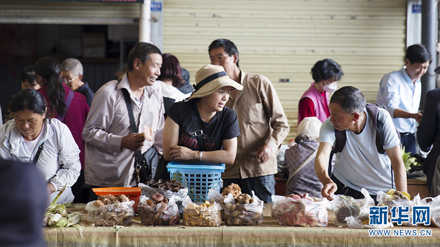 来购买菌子的人络绎不绝(摄于8月2日)。新华网 范芳钰/摄
