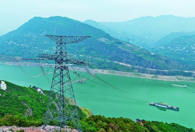 经过连续奋战,白鹤滩至浙江±800千伏特高压直流输电工程(白浙线)长江三峡跨江线路全线贯通。白浙线是我国实施“西电东送”的重大电网工程,途经四川、重庆、湖北、安徽、浙江5省市,送端连接目前世界在建最大水电站白鹤滩水电站,受端位于杭州临平区浙北换流站。图为9月19日,白浙线湖北省宜昌市秭归县长江大跨越施工现场。(光明日报 作者郑家裕)