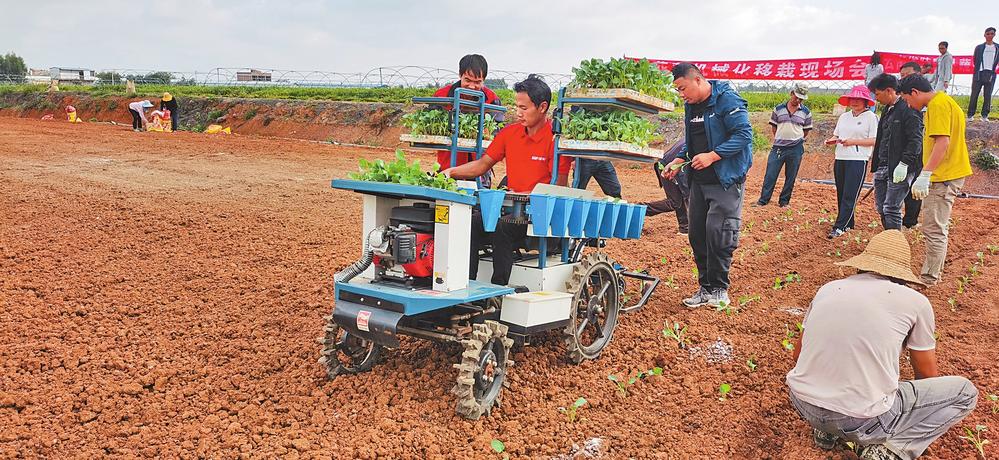 陆良县蔬菜科技特派团举办 青花菜机械化移栽现场会